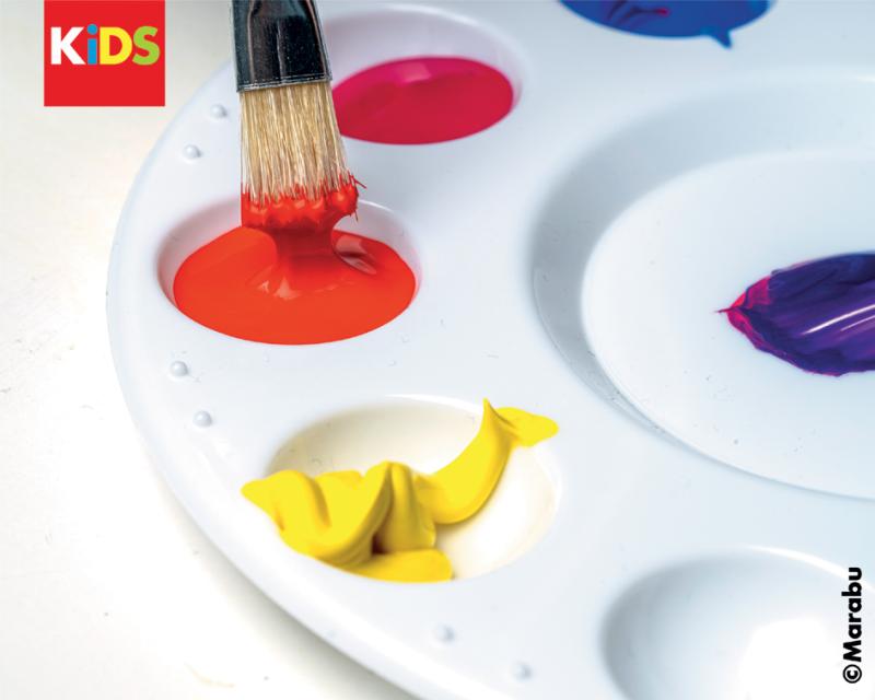 Artikelbeschreibung:für erste Farbmischversuche, 10 Farbfelder, großes Mischfeld, rund, Kunststoff, weiß