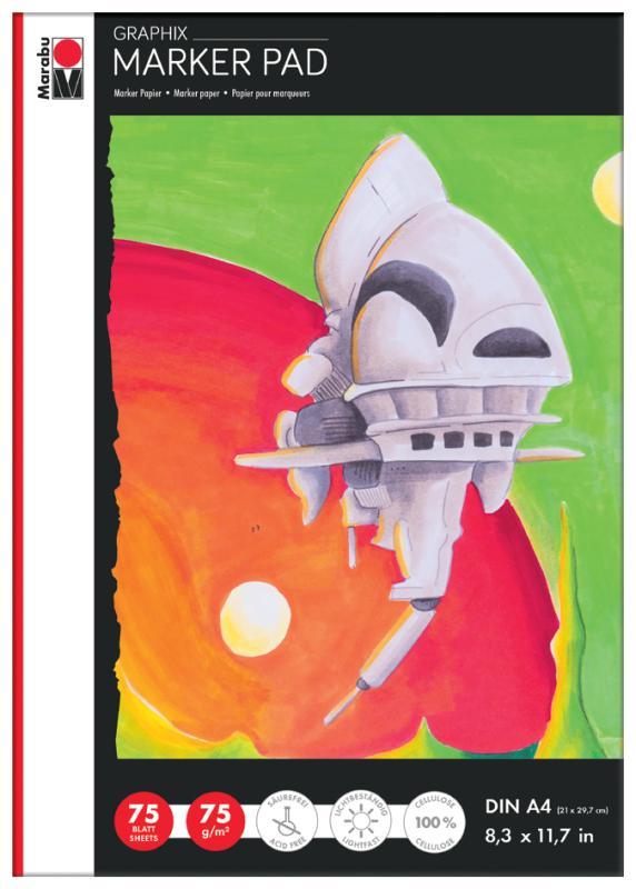 Artikelbeschreibung:75 Blatt, für alkoholbasierte Marker, integrierte Lösemittelbarriere für eine brillante Farbwiedergabe ohne Durchschlagen, 100 % Cellulose, galtt, weiß, säurefrei, licht- und alterungsbeständig, 1-seitig geleimt