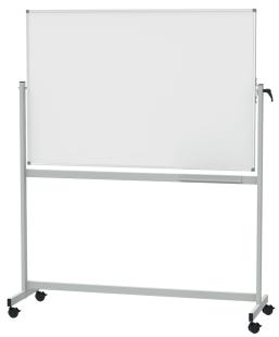 Artikelbeschreibung:drehbar, Tafel lackiert, stufenlose Schrägstellung, sichere Arretierung, Weißwandtafel, beidseitig nutzbar, Ablageschale aus Metall, Rahmen aus silbereloxiertem Aluminium mit Kunststoffecken in grau, Gestell aus Stahl in grau Stellmaße: (B)2.155 x (T)558 x (H)1.945 mm 4 Doppel-Lenkrollen, feststellbar