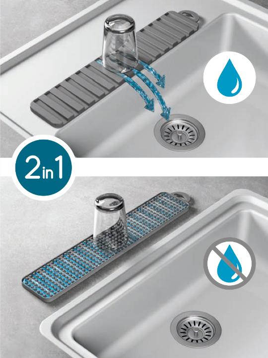 Artikelbeschreibung:Material: PEVA PE 50% + EVA 50%, für die Spülenablage schützt vor Kratzern und schont Glas und Geschirr, beidseitig verwendbar - mit oder ohne Ablaufrinnen spülmaschinengeeignet, Maße: (B)400 x (T)80 x (H)12 mm