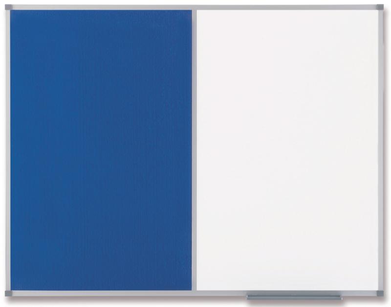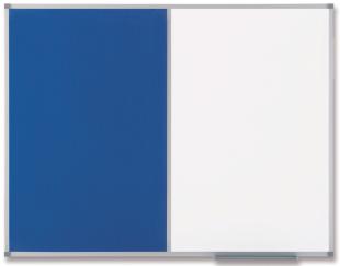 Artikelbeschreibung:zur Hälfte Weißwandtafel / Filztafel (blau) Weißwandtafel: lackiertes Stahlblech, beschreibbar, magnethaftend, Aluminiumrahmen (abgerundete Kunststoffecken) mit Stifteablage, inkl. Montagesatz (neu: 1902258 / alt: QC4132)