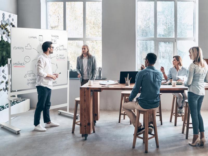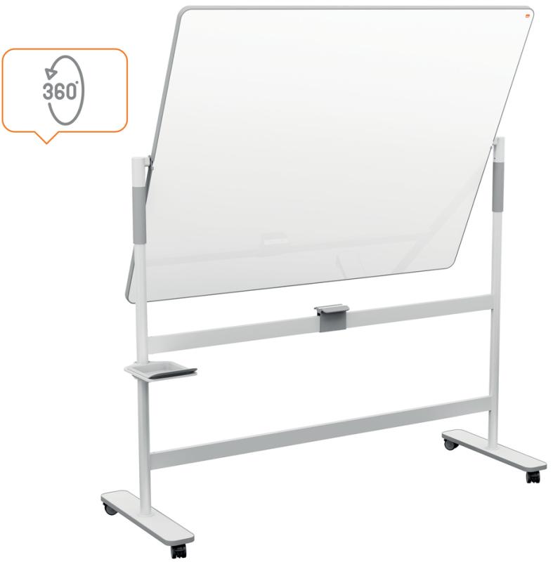 Artikelbeschreibung:360 Grad drehbar, doppelseitige Weißwandtafel, magnethaftend Tafel mit lackierter Stahloberfläche, Stativ mit feststell- baren Rollen, abnehmbare Stifthalterung, Rahmen grau, Tafelgröße: (B)1.500 x (H)1.200 mm