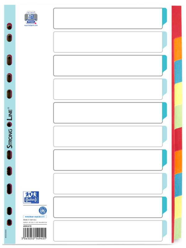 Material: Karton, Ausführung: 10-teilig, Format: A4, Lochung: Eurolochung, Farbe: farbiger Verlauf, VE: 25 Stück,