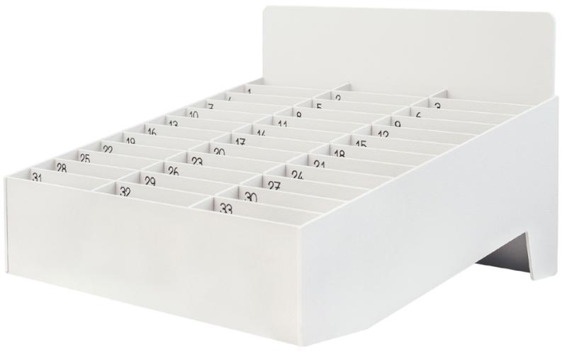 Artikelbeschreibung:aus schlagfestem Polystyrol, Stärke: 3 mm, Fächermaße: (B)100 x (T)20 x (H)75 mm, Maße: (B)313 x (T)279 x (H)200 mm (PHDOCKT33.02)