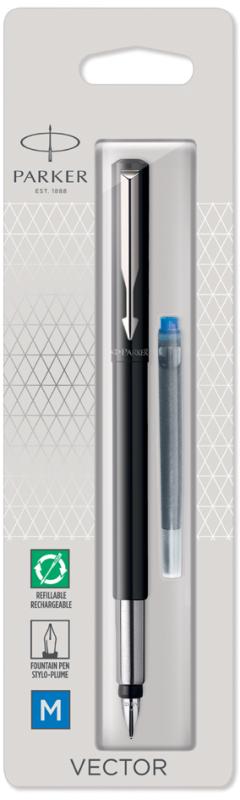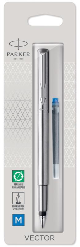 Artikelbeschreibung:mit Steckkappe, Edelstahlschaft, Kappe und Clip, Schaftende aus kratzfestem, glänzendem Kunststoff, Edelstahlfeder, inkl. Großraum-Tintenpatrone, auf Blisterkarte