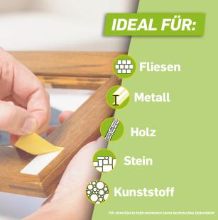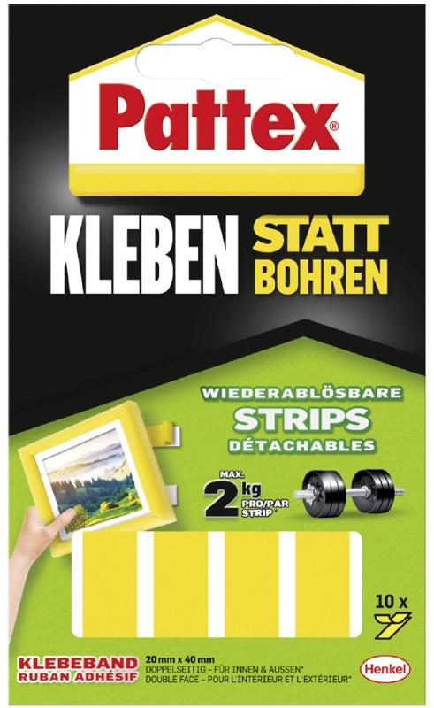 Artikelbeschreibung:durch Drehen des Objektes einfach wieder ablösbar, max. Haltekraft pro Strip: 2 kg, für Innen- & Außenbereich, doppelseitig klebend Inhalt: 10 Strips (9H PXMS1/335224) für Befestigungen auf glatten Untergründen