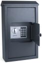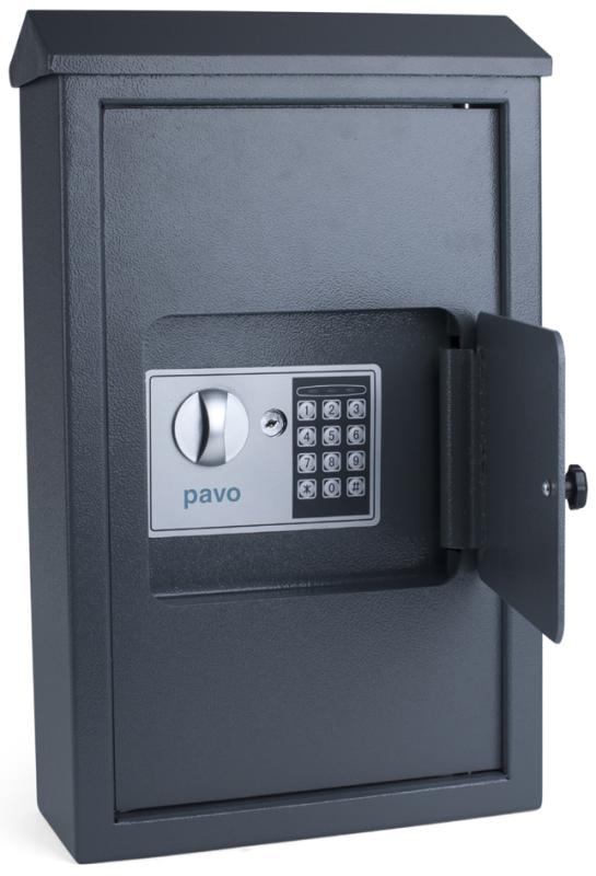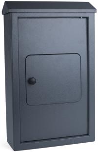 Artikelbeschreibung:mit Schlossabdeckung und abgeschrägtem Dach, ideal für den Außenbereich, mit elektronische Sicherung, aus Stahl, matt, seitliche Schlüssel-Einwurföffnung,feststehende Hakenleisten Sicherheitsschloss inkl. 2 Schlüsseln, Lieferung inkl. 50 Schlüsselanhänger & Befestigungsmaterial, Maße: (B)310 x (T)132 x (H)500 mm, Farbe: dunkelgrau