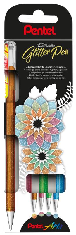 Artikelbeschreibung:Strichstärke: 0,5 mm, zwei Strichfarben, Glitter-Effekt, sortiert in den Farben: hellgrün, hellblau, rosa, gold beinhaltet: 4 Stück (K110-4DM)