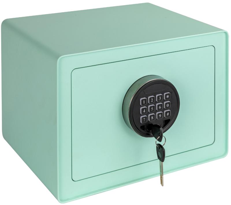 Außenmaße (BxTxH): 350 x 250 x 250 mm, Fassungsvermögen: 15,5 Liter, Schließart: Elektronik-Schloss, Farbe: mint,
