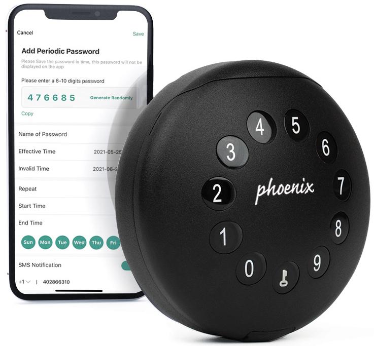 Artikelbeschreibung:motorisiertes Tastenschloss, bluetoothfähig, manuell oder zusätzlich mit mobiler, kostenlosen App programmieren und/ oder löschen, Gehäuse aus Zinklegierung, IP65, Bohrungen für Wandmontage, Durchmesser: 100 mm, Tiefe: 50 mm (KS0211E) Innenmaße: (B)90 x (T)15 x (H)60 mm, Gewicht: 0,5 kg, Fassungsvermögen: 0,08 Liter
