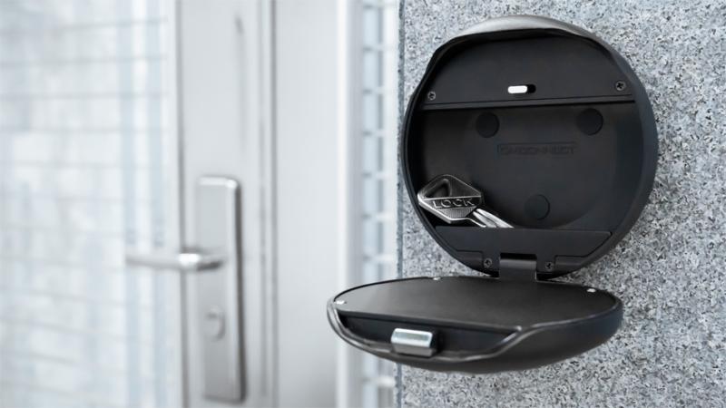 Artikelbeschreibung:motorisiertes Tastenschloss, bluetoothfähig, manuell oder zusätzlich mit mobiler, kostenlosen App programmieren und/ oder löschen, Gehäuse aus Zinklegierung, IP65, Bohrungen für Wandmontage, Durchmesser: 100 mm, Tiefe: 50 mm (KS0212EC) Innenmaße: (B)90 x (T)15 x (H)60 mm, Gewicht: 0,6 kg, Fassungsvermögen: 0,08 Liter