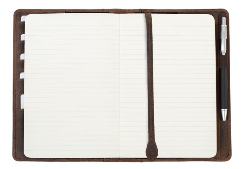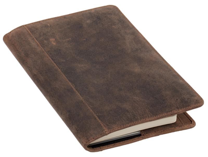 Artikelbeschreibung:2 Einstecktaschen für ein A5 Notizbuch, 8 Kreditkarten- fächer, Stiftschlaufe, Lesezeichen, Maße: (B)155 x (T)10 x (H)225 mm