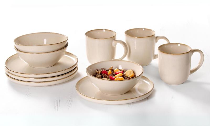 Artikelbeschreibung:aus Steingut, mit Reaktivglasur, spülmaschinenfest, bestehend aus: 4 Kaffeebecher, 4 Frühstücksteller und 4 Schalen