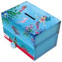 Artikelbeschreibung:2 getrennten Boxen, für kurz- und langfristige Sparziele, obere Box mit Magnetöffnung, untere Box mit Schloss, kaschierte stabile Pappe, Maße: (B)110 x (T)80 x (H)110 mm