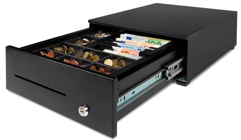 Artikelbeschreibung:8 Münzfächer / 8 Geldscheinfächer, Einsatz herausnehmbar, Einwurfschlitz an der Vorderseite, Stahlgehäuse, Kunststoff- Schublade, extra robuste Teleskop-Schienen, inkl. Münzbe- hälter, Maße: (B)328 x (T)422 x (H)130 mm (121-0564) RJ12 Anschluss für Quittungsdrucker und Registrierkassen, Mikroswitch, elektrische Öffnung & Öffnung mit Schlüssel, extra starke Verriegelung in drei Schlüsselpositionen