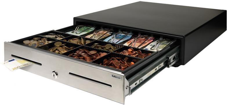 Artikelbeschreibung:8 Münzfächer / 5 Geldscheinfächer - herausnehmbar, Einwurfschlitz an der Vorderseite, mit Teleskop-Schienen, elektrische Öffnung und Öffnung mit Schlüssel, Stahlgehäuse, Maße: (B)460 x (T)465 x (H)115 mm (132-0427) RJ12 Anschluss für Quittungsdrucker und Registrierkassen
