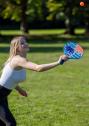 Artikelbeschreibung:2 Beachball-Schläger aus lackiertem Holz (Länge: 378 mm/ Breite: 235 mm/Stärke: 8 mm), 2 Bälle, in Netztasche mit Kordelzug Beachball-Set