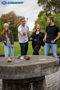 Artikelbeschreibung:4x3 gleichfarbige Stoffsäckchen, Durchm.: 80 mm, mit Granulat gefüllt, 115 g je Kugel, 1 Zielkugel, in Netztasche mit Kordelzug, inkl. Regelwerk