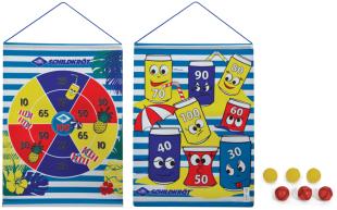Artikelbeschreibung:bestehend aus einer aufrollbaren Klett-Dart-Scheibe, beidseitig bedruckt, (B)410 x (H)510 mm und 6 Klettbällen sortiert in 3x rot und 3x gelb