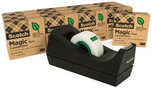 Artikelbeschreibung:Abroller aus ABS-Kunststoff, Klebeband Magic A Greener Choice, 19 mm x 33 m Inhalt: 1 Abroller C-38 + 3 Rollen Klebefilm (9-1933R3C38)