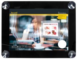 Artikelbeschreibung:doppelseitige, transparente Halterung, witterungs- und UV-beständig, Anbringung mittels 4 Saugnäpfen, Maße: (B)270 x (H)360 mm (PFW-A4-YE)