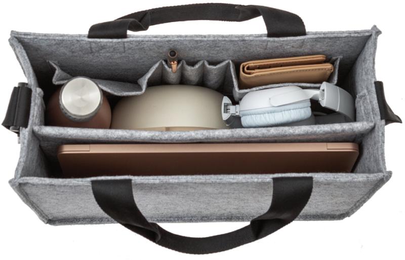 Artikelbeschreibung:synthetischer Filz, 2 Tragegriffe & verstellbarer Schulter- gurt, passend für Notebooks bis 15,4` (39,11 cm), oben offen Gummiband, 2 große Innenfächer & 5 Einsteckfächer, bis 15 kg belastbar, Maße: (B)360 x (T)150 x (H)280 mm, hellgrau (BA408)