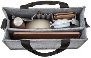 Artikelbeschreibung:synthetischer Filz, 2 Tragegriffe & verstellbarer Schulter- gurt, passend für Notebooks bis 15,4` (39,11 cm), oben offen Gummiband, 2 große Innenfächer & 5 Einsteckfächer, bis 15 kg belastbar, Maße: (B)360 x (T)150 x (H)280 mm, dunkelgrau (BA410)