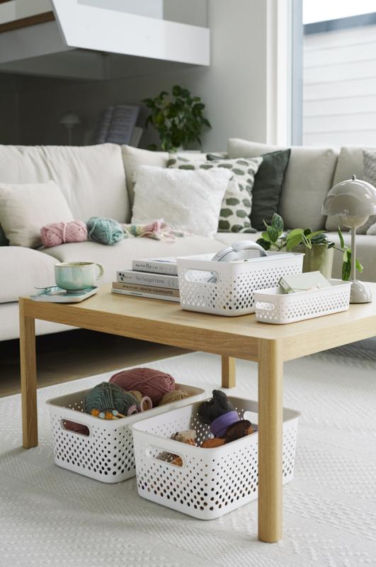 Artikelbeschreibung:Fassungsvermögen: 11,4 Liter, modernes Design, 2 Tragegriffe, aus recyceltem Kunststoff, Maße: (B)365 x (T)270 x (H)150 mm, Farbe: sea salt