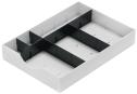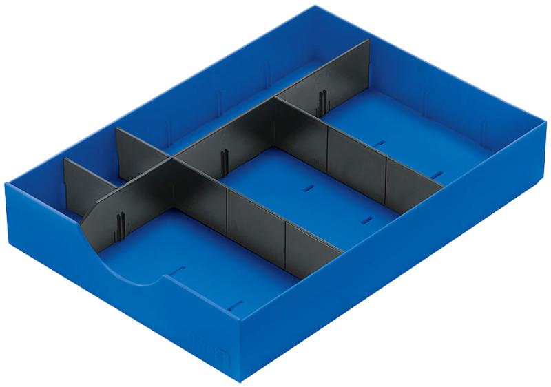 Artikelbeschreibung:schwarz, 1 Längs- und 2 Querstege, Material: Polystyrol, Maße: 314 x 55 mm und 22 x 43 mm, zur Einteilung der styrodoc System-Schubladen (268-420.95)