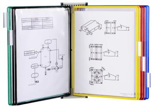 Artikelbeschreibung:bestückt, aus Stahlblech, lichtgrau mit 4 Anschlagstoppern, Lieferung inkl. 10 Drehzapfentafeln, DIN A4, sortiert in den Farben: blau, rot, gelb, grün und schwarz