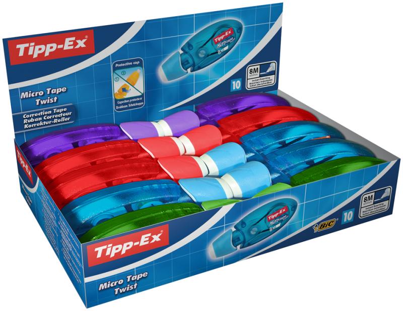 Artikelbeschreibung:transparent-blau, drehbare Kappe für optimalen Bandschutz, widerstandsfähiges Polyesterband, optimaler Abrollmechanis- mus, sofort überschreibbar, für Rechts- & Linkshänder gepackt zu 10 Stück im Display (neu: 8706142 / alt: 8942764)