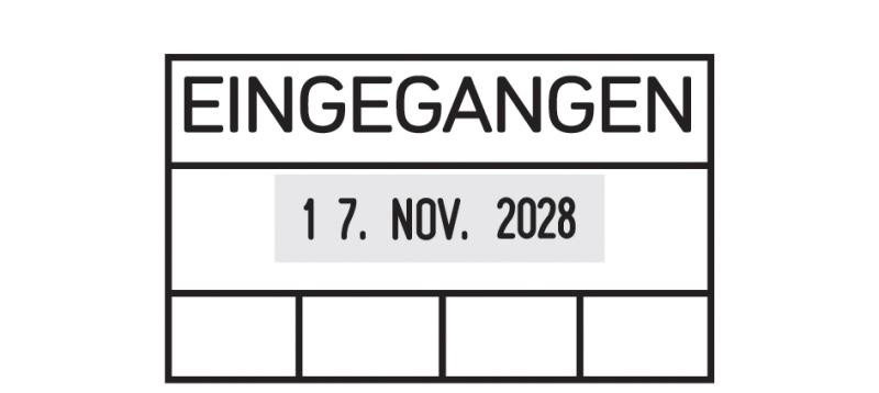 Ausführung: EINGEGANGEN + 4 Felder, Abdruckgröße: 50 x 28 mm, Gehäusefarbe: schwarz,