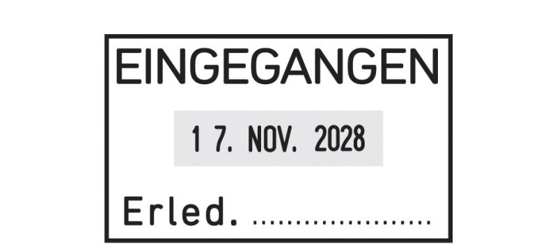 Ausführung: EINGEGANGEN / Erled....., Abdruckgröße: 50 x 28 mm, Gehäusefarbe: schwarz,