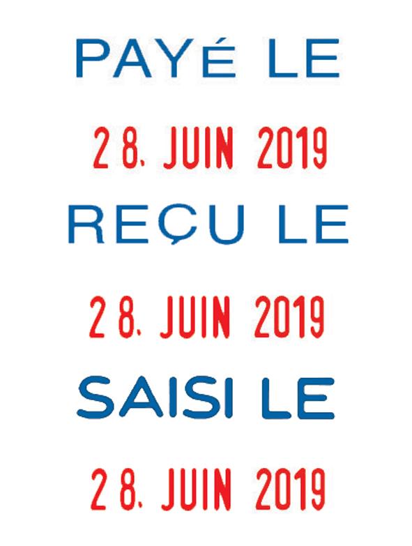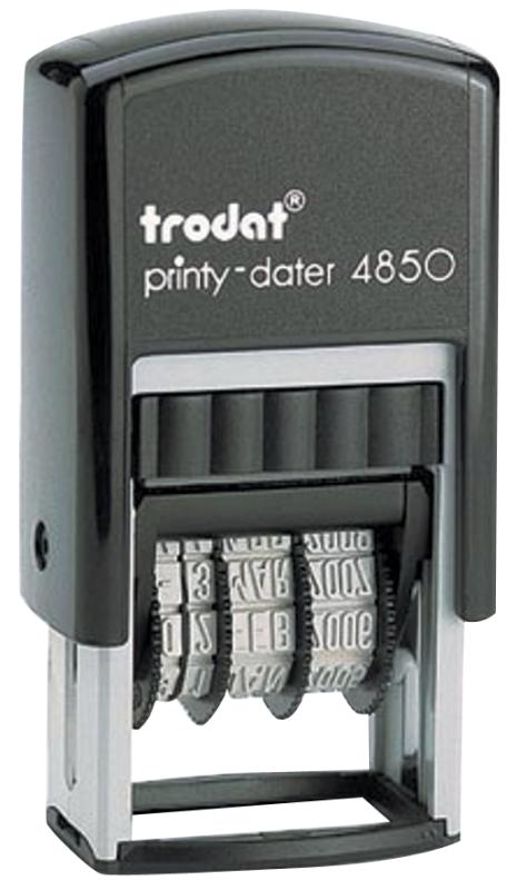 Artikelbeschreibung:- für den Markt: F / L - mit Textplatte, selbstfärbend, Abdruckgröße: 5 x 25 mm, Schrifthöhe: 3,8 mm, Text in blau, Datum in rot, Datumein- stellung mittels Antriebsrädern, passendes Ersatzstempel- kissen: 6/4850/2