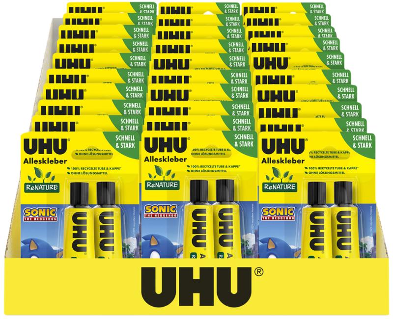 Artikelbeschreibung:transparent, trocknet schnell, wasserbeständig, geruchlos, nachkorrigierbar, 2 Alleskleber auf einer Blisterkarte mit SONIC Motiv, Inhalt: 30 Blisterkarten a 2 Tuben mit 35 g (7006397/9000361)