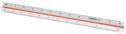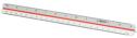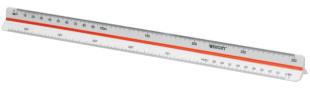 Artikelbeschreibung:Maßstab in weiß, mit 2 farbigen Hohlkehlen in rot und blau, Länge: 300 mm, Teilung: 1:20, 1:25, 1:33 1/3, 1:50, 1:75, (E-10161 00)