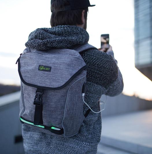 Artikelbeschreibung:integriertes LED-Licht, Reflektorstreifen, USB-Anschluss, Kopfhörer-Ausgang, Notebook-/Powerbank-Fach, diverse Organisationsfächer, inkl. Sattelbezug, Volumen: 18 Liter, Maße: (B)300 x (T)150 x (H)400 mm
